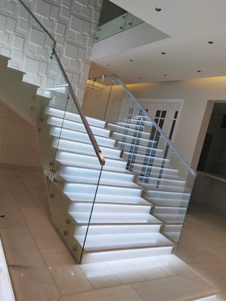 أما زجاج الدرابزين فهو اختيار مثالي لتأمين المساحات العامة والخاصة. يتميز بجاذبيته البصرية وقدرته على توفير رؤية واضحة دون عوائق، مما يجعله خيارًا مناسبًا للسكندرات أو البلكونات.